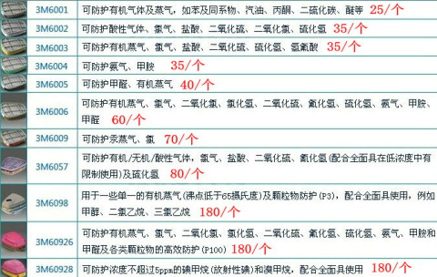 请根据下面防毒能力来选择需要的滤毒盒(根据您的需要另外购买)